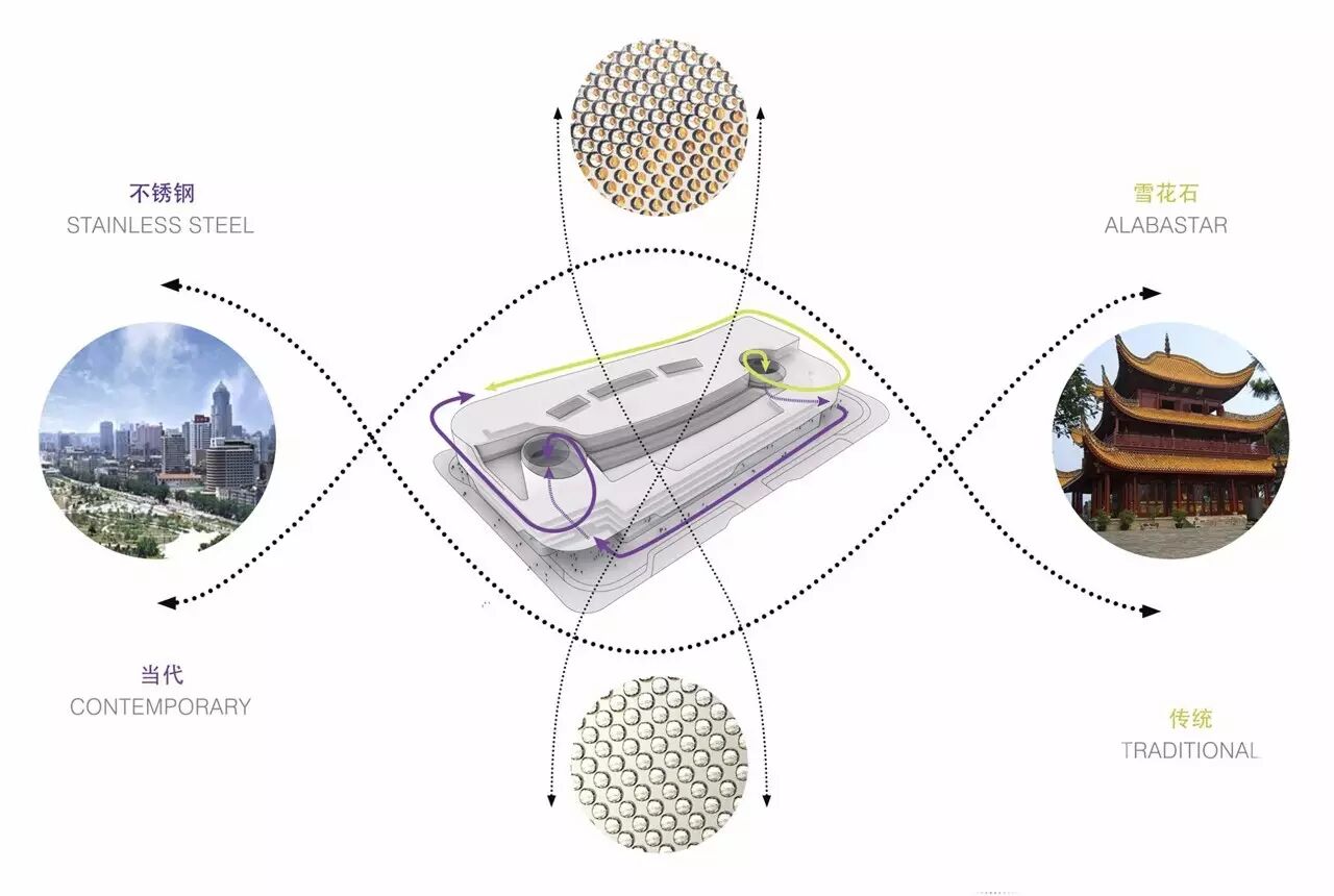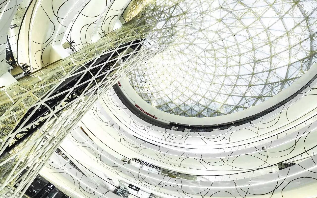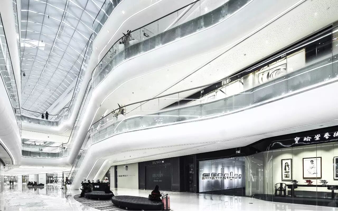 UNStudio设计的万达广场作是结合现代和传统的设计元素的当代经典之作。所有的设计部件:连贯的围护结构,动态外立面照明及其内容,建筑周围的景观和空间的规划,以及内部从中庭到楼上和所有走廊上的指示标语都体现了协同和流动的理念。