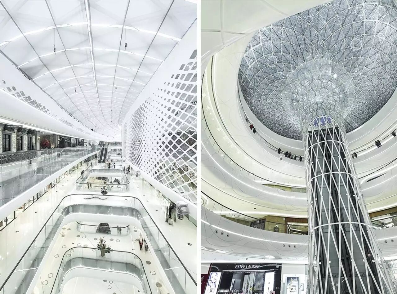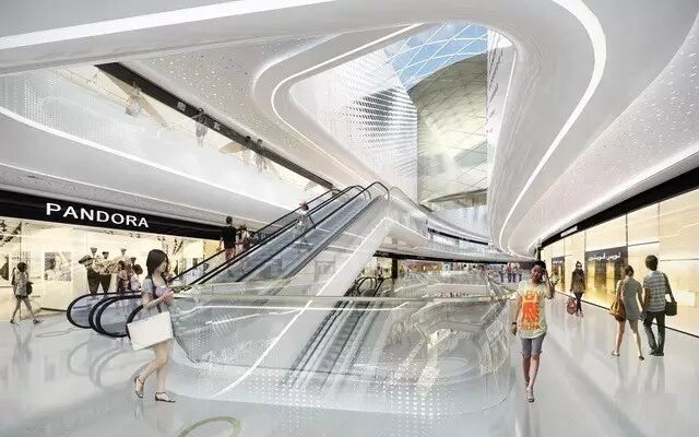 “反射光和团,用于整个汉街万达广场,创建一个几乎奇幻的世界。为购物者创造新的微观世界和体验空间,类似世界的剧场,其中零售商场几乎成为一个舞台或一个表演的地方,为顾客提供了各种不同的印象和体验。”UNStudio解释说。