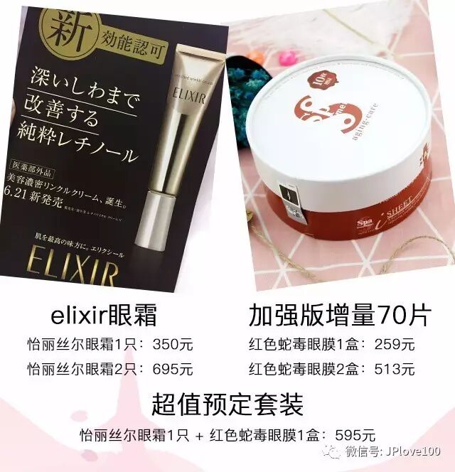 elixir 全新去皱眼霜+蛇毒眼膜红色增量装预定,预定就送美容猪蹄一份