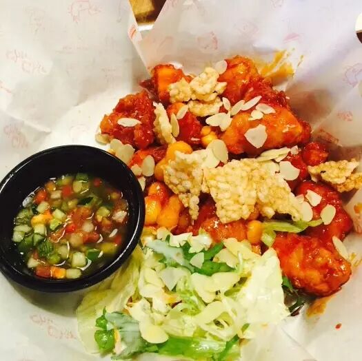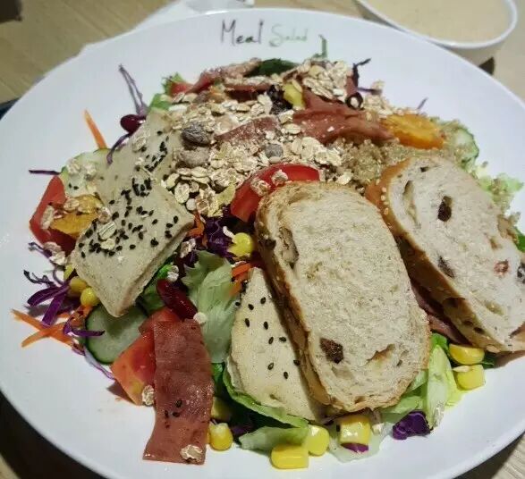 最近不是流行吃草咩,整条楚河汉街的烧肉火锅小龙虾强压环境下,米有沙拉自成一派,菜单 做得很吸引,很少轻食做得如此迷人~分量比想象中大很多,吃得饱饱的,沙拉素材新鲜主料多数有藜麦,鹰嘴豆,彩椒以及各类混合蔬菜,能保证轻食同时低热量碳水化合物的摄入,肉类有鸡肉牛肉虾仁龙利鱼,选择范围之广~