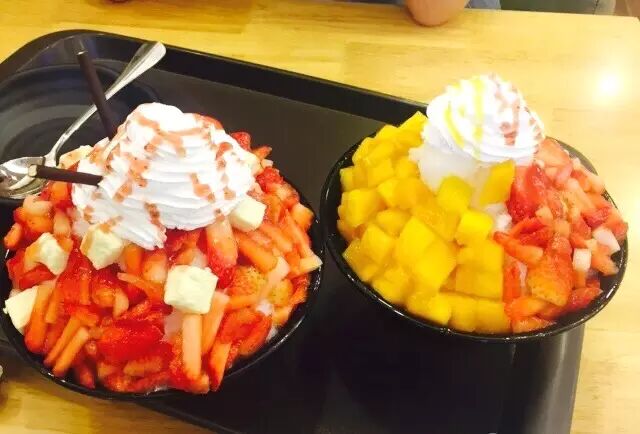 分量很足,满满一大碗雪冰,配上满满的水果铺面,芒果草莓抹茶芝士满足了整个夏天~