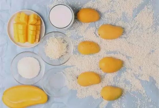 食材:糯米、椰汁、雪燕、芒果、椰丝、椰蓉