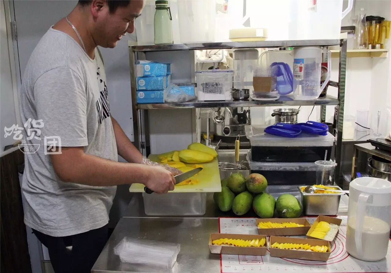 除此之外,包括椰浆、牛奶,都是萌小带从泰国进口而来的。而水果则是选用越南的大青芒和越南青柠。