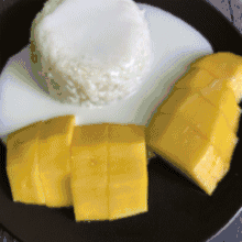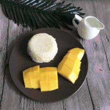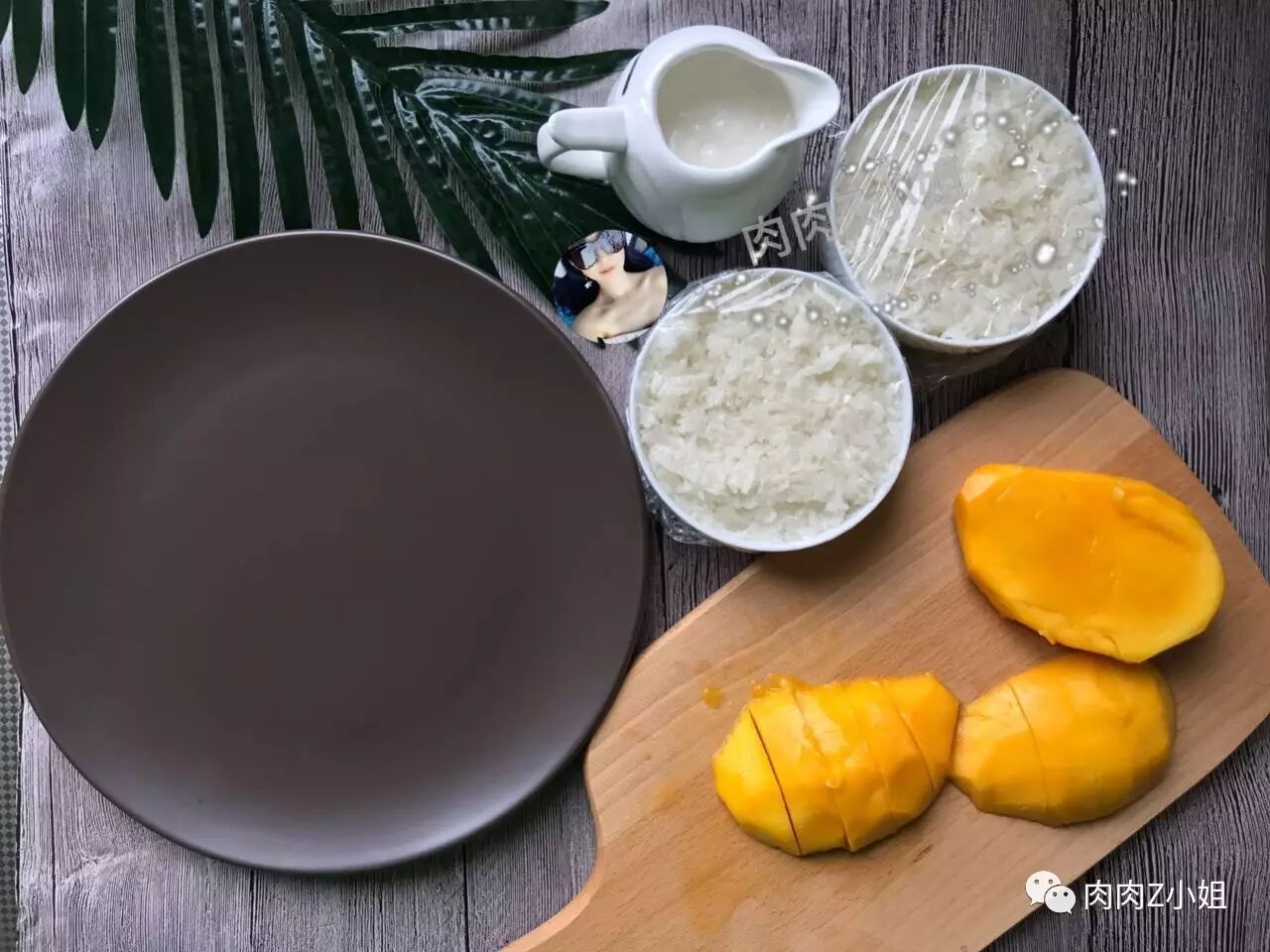 和我妈妈去泰国旅游回来她就信誓旦旦的说要给我做芒果糯米饭,因为她本身也是非常爱吃糯米的人,在泰国带她吃了几家正宗的糯米饭后简直爱到不行,回来一副要做米其林一星主厨的架势,于是我满怀感激的翘首以盼,想着在家躺着也能吃到泰国美味,乐哉!但只怪我还是太年轻、太容易相信人、太天真无知⋯⋯