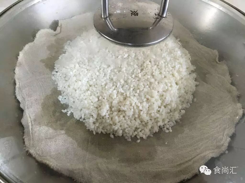 2. 用蒸锅烧水,水开后,垫上蒸笼纱布再放入糯米,中大火蒸20分钟❀▽❀