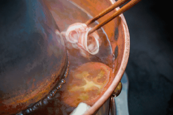 老北京铜锅四季涮肉的汤底,有老汤、骨汤、麻辣、鸳鸯几种选择,等着老铜锅下红炭火渐渐起来,清汤渐沸,把那红白相间的羊肉片往那滚滚骨汤里一丢,蘸上经过改良的“二八酱”,这灵魂和味蕾都得到了满足!