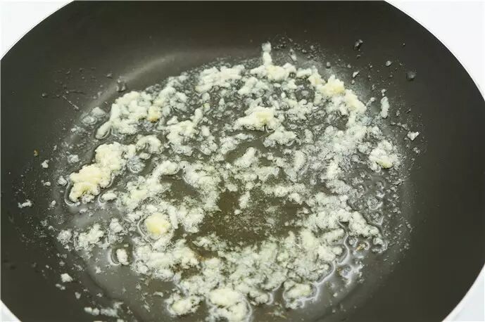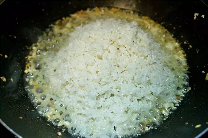 5 另起一个锅,以少量橄榄油爆香洋葱碎、蒜末后加入事先泡好的大米翻炒