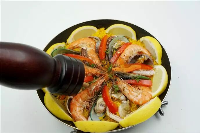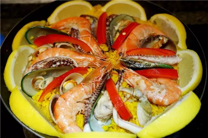 ▶ 在许多个节庆活动中,西班牙人喜欢制作大到夸张的烩饭,需要由十几人来端,几十人来分享。烹饪完毕的超级西班牙海鲜烩饭Paella,看上去热闹非凡,散发着迷人的香味,令现场气氛顿时进入高潮。几十号人分享一锅饭,陌生人顿时变熟客。西班牙人天性的热情,大约也和Paella有关吧。和著名的意大利烩饭相比,西班牙海鲜烩饭Paella也许更招人喜爱,后者更有生气,如同煲仔饭一般,上桌时似乎还带着没有燃尽的烟火,叫人食欲顿生。西班牙海鲜烩饭Paella,大约是接受度最高的美食之一。