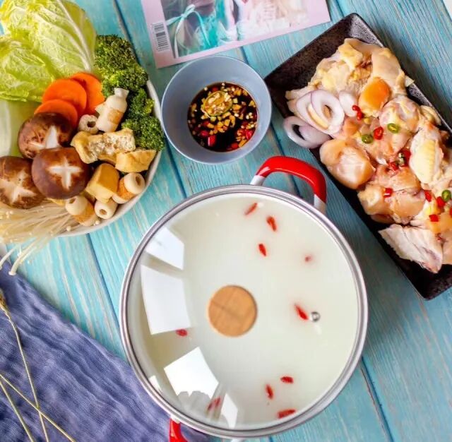 如果说人人都会爱上四川火锅的红油锅,那么你们也决不会错过那鲜美的竹荪鹅秘制养生汤。
