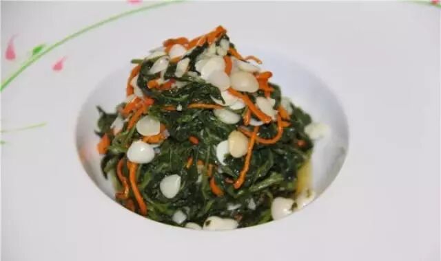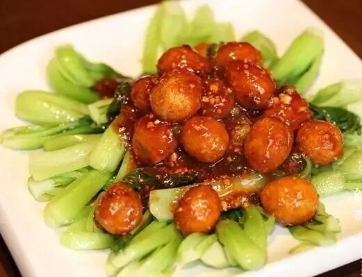 虎皮蛋扒菜心里的鹌鹑蛋过油炸出,金黄色和小青菜搭配起来卖相不错。淋上烧好的料汁令人垂涎欲滴,吃完大鱼大肉硬菜,几个菜团子下肚倍爽,油麦菜加少许面粉做成的丸子。