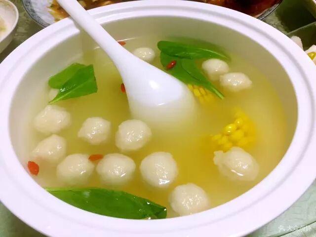 大补的海鲜吃后,最后以一碗美味的鱼丸汤结束完美的享受。