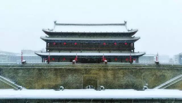 被厚积雪覆盖的永宁门,仿佛一夜间回到了千年以前的长安城。