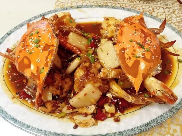 老板自制的香辣酱,配上超级入味的年糕,蟹肉松软,一吸便出来肉了,大只螃蟹经过勾芡后蟹黄有别样的味道。