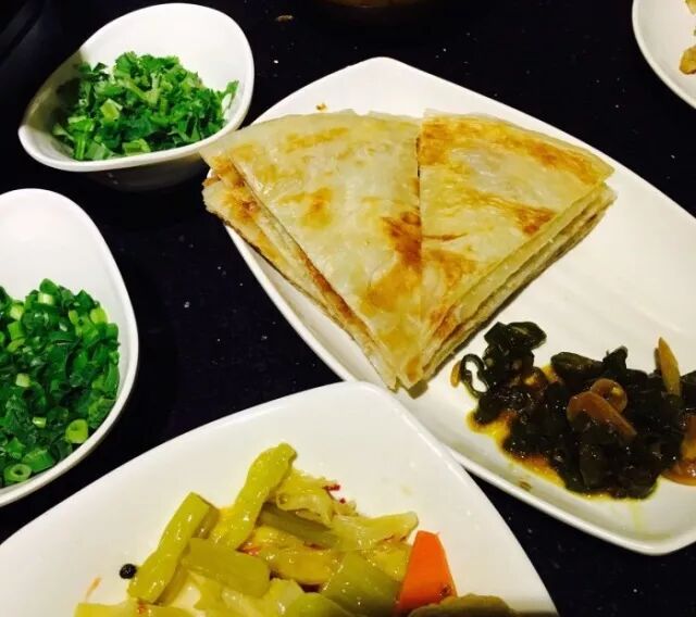 手撕饼酥脆有层次,卷上小葱和酱,就着清脆爽口的私家炝菜,卤味与养生汤,酸辣开胃的菜滋补你的胃。
