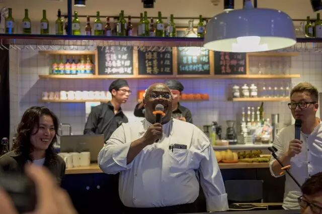 大菜上来之前主厨Thierry对这道出品进行了简单的介绍和对参加这次party的人们表示欢喜。如果不是爱在蔓延的颜值担当在旁边声情并茂的翻译,我想我还是听不懂。O(∩_∩)O哈哈哈~