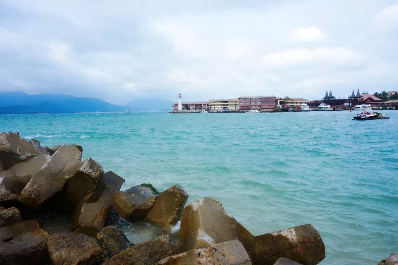 分界洲岛水清沙白,碧海蓝天,水上项目有潜水,搬迁观光船,拖伞,摩托艇等。