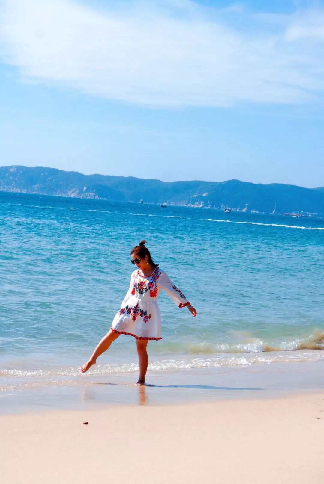 亚龙湾的沙子又白又细腻,席地而坐,静听海浪;阳光,沙滩,浪花,咸咸的海水,木屋,在这样的环境中生活,大概做梦都会笑醒吧!没有庄里的雾霾,北方的寒冷,烦人的工作,真想就这样一直待着,奈何也只能是想想了。