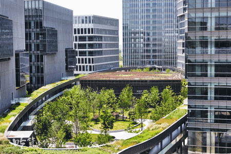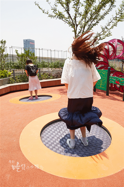 鱼篓状的怡丰城,有条空中连廊直达对面的商务楼,中间都是绿植景观。这样的场景只有在怡丰城5楼的Sky Park才看得见!