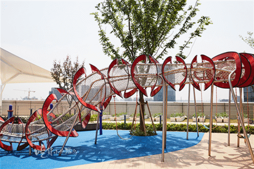环形的Sky Park有一块探索乐园区域,做成龙的样子,可以钻进去也可以坐滑梯下来!