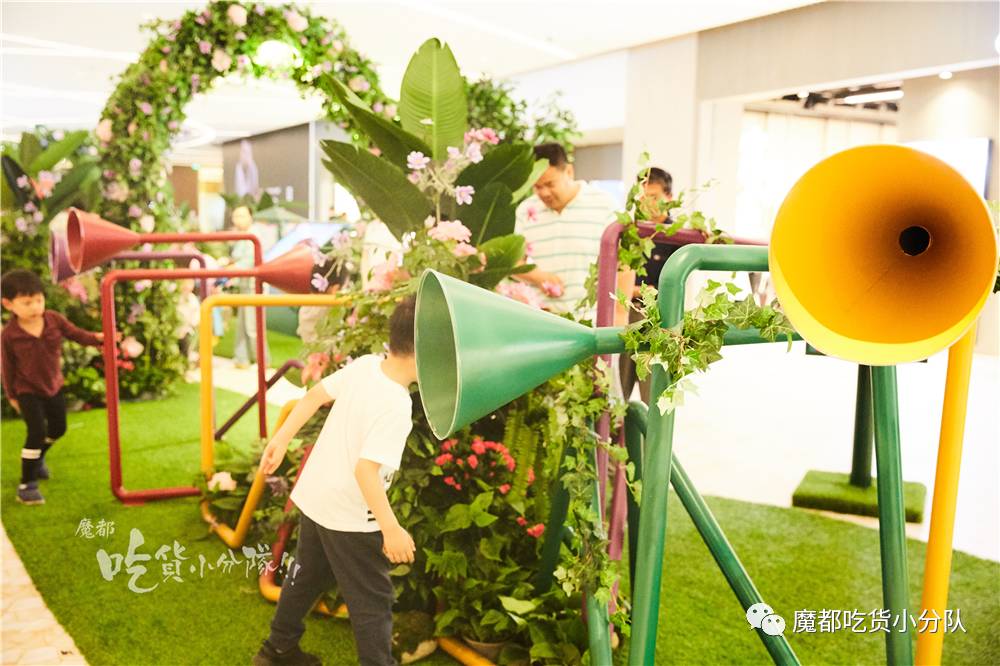 这些喇叭花传声筒能后变成好几种声音传播,不同分贝就能画出不同的色彩画,小朋友可以试试用音符来玩这个梦幻乐之园。