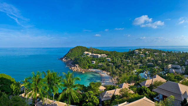 “椰林海岛”苏梅岛:一片月牙般洁白的沙滩,环抱着被阳光晒得闪闪发光湛蓝的海水,随着波浪轻轻的晃动海面,海水被分出浅蓝至碧绿层次分明的色彩。这就是苏梅岛,海滩众多、水清沙白、景致迷人。