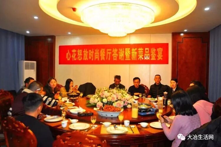 有一种心跳,叫呯然心动;有一种喜悦,叫心花怒放。1月6日,位于大冶金湖大道两湖天下东门附近的"心花怒放时尚餐厅"举办答谢暨菜肴品尝会,20多名顾客代表、"心花怒放美食微信群"代表及和各行各业及媒体代表参加了品尝会。大家饮美酒,品美食,提建议,叙友谊……人人心情舒畅,个个畅所欲言,其乐融融,其情浓浓,室外寒风凛冽,屋内温暖如春。