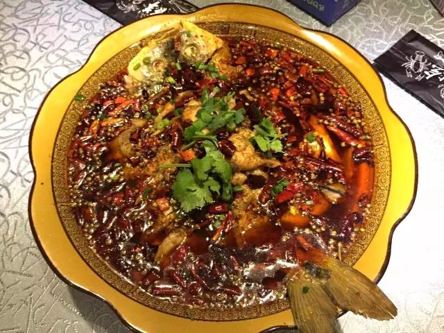 水煮鱼选用新鲜的活鱼,加上秘制的香辣料,将辣椒御寒、益气养血功效分发挥的淋漓尽致,烹调出来的肉质一点也不会变韧,口感滑嫩,油而不腻。既去除了鱼的腥味,又保持了鱼的鲜嫩。满目的辣椒红亮养眼,辣而不燥,麻而不苦。"麻上头,辣过瘾",让水煮鱼在全国流行得一塌糊涂。