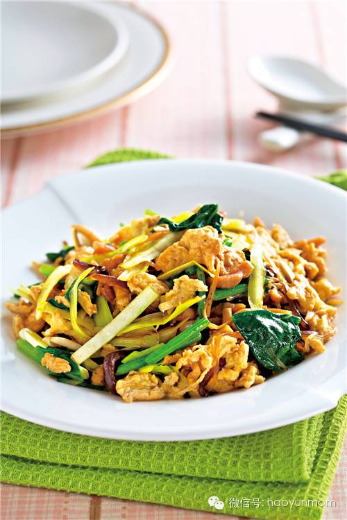 2、传统的老烧蛋只会加入韭黄,但为使准妈妈维持消化道通畅,并增添食材的色彩,建议加入菠菜或其他喜欢的蔬菜。