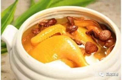 4. 把鸡放沸水中稍烫,取出放炖盅内,加入猪瘦肉和排骨,加盖密封盅口,放入锅内蒸约二小时左右至鸡酥透,加入煮熟的香菇,调味后便可食用.