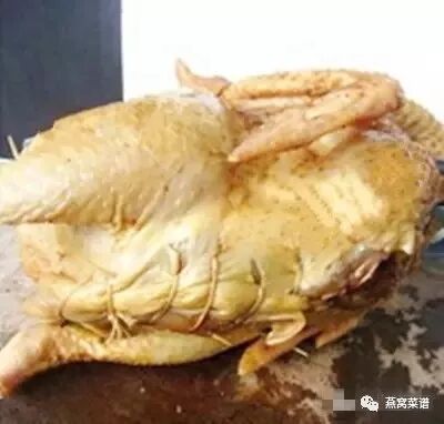 3. 泡发好的燕窝放入鸡肚内,用线缝口