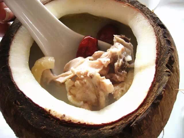 椰子炖鸡,肉香味美,汤清爽口,将鸡肉和椰子的营养完美融合,补中有清,在干燥的冬天有益气生津,清热补虚的神奇功效哦~