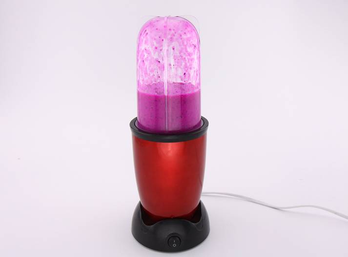 4、将火龙果倒入搅拌机中并且倒入椰奶,将火龙果搅打均匀。