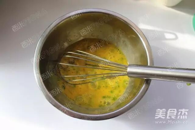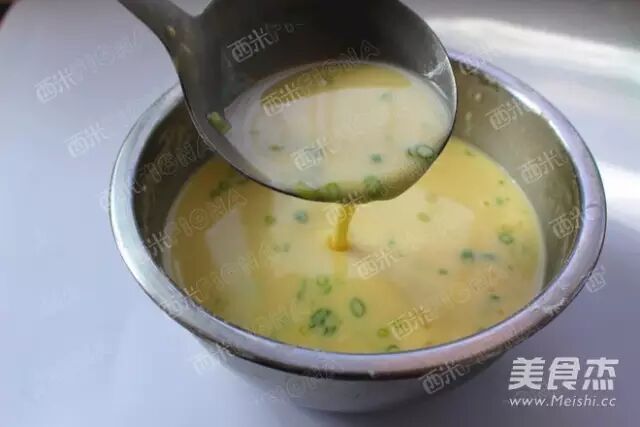 2.先把2个鸡蛋磕在碗里,打散,加入葱花。