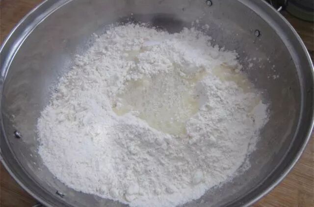 1、将适量面粉倒入盆中,然后倒入适量的清水。