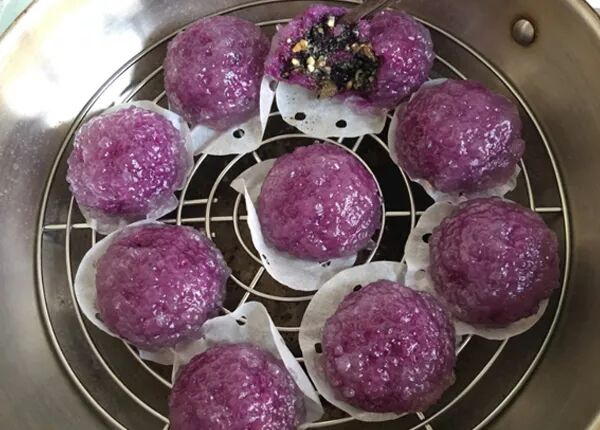 8. 蒸熟的西米紫薯球非常漂亮哦!