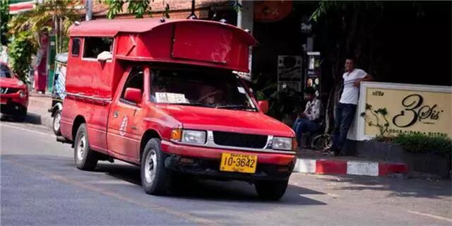 3、双条车是泰国特有的公共交通方式,上车前询问司机是否能够顺路,单程价格20到40铢,随叫随停。