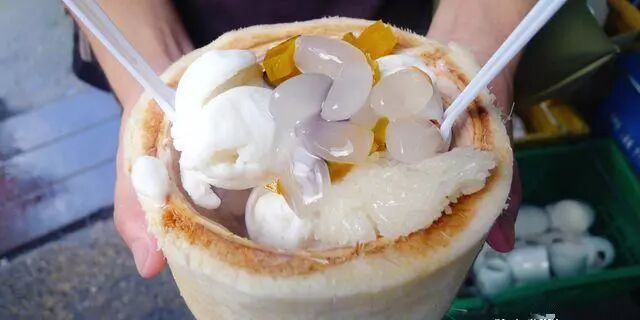 冰淇淋用椰浆制成,浓浓的椰香,丝滑的口感,还有自己选择的水果,口口留香,吃到最后还可以用勺子挖椰肉吃,好不痛快。