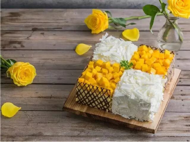 榴莲蛋糕和芒果慕斯完美结合口感超赞~