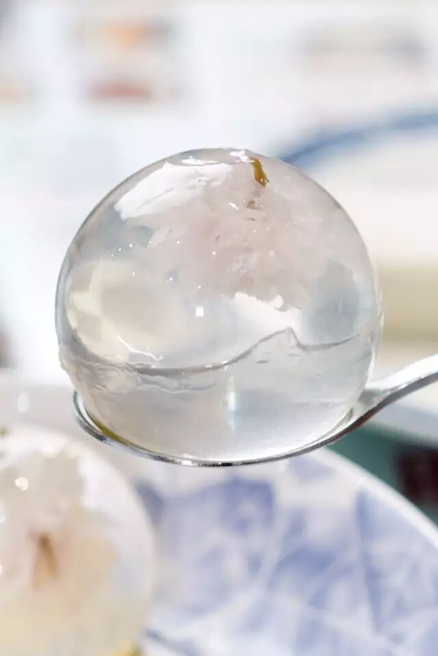 晶莹剔透的水信玄饼,里面盛放着娇艳欲滴的花朵,颜值爆棚!