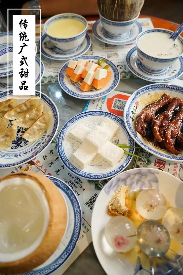 店内还有一大堆广式小吃甜品。无论是招牌双皮奶,椰奶冻糕,牛奶桃胶、蜜汁凤爪,都值得你们去尝试!