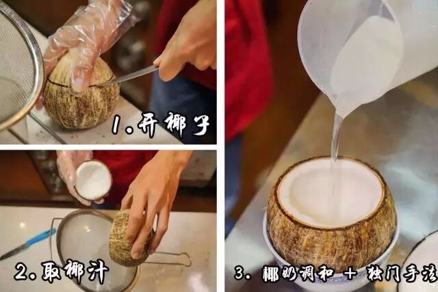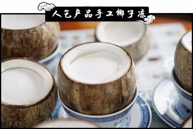 这里精选海南本土椰子,用新鲜的椰子水和椰肉,进口奶粉 + 独门手法 ,再放入冰箱冷冻,每一个椰子冻都是精心制作。