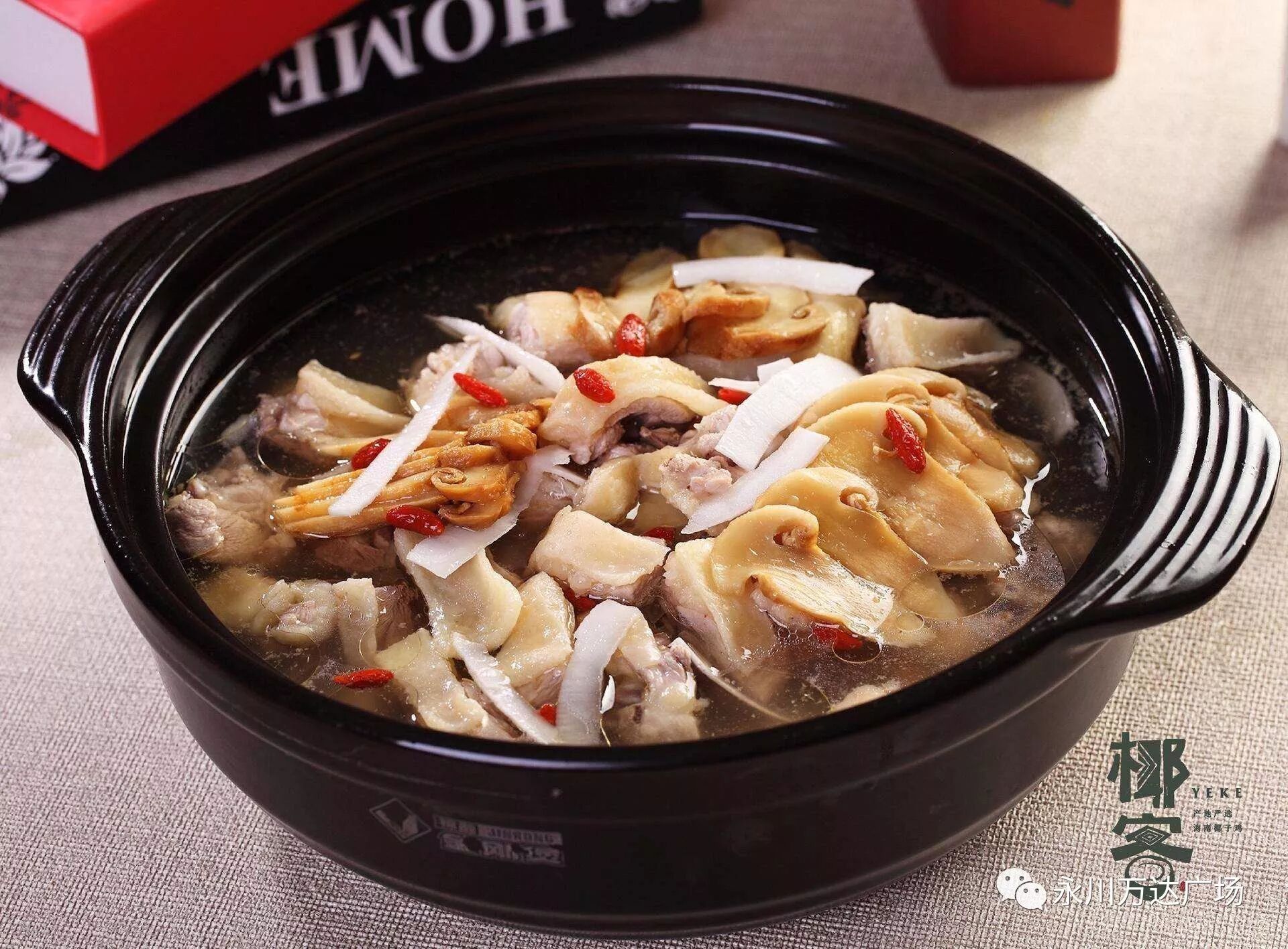 配以山上土生土长的乌鸡,肉香味美,椰味芬芳,汤清爽口,补中有清,风味独特,共成益气生津。