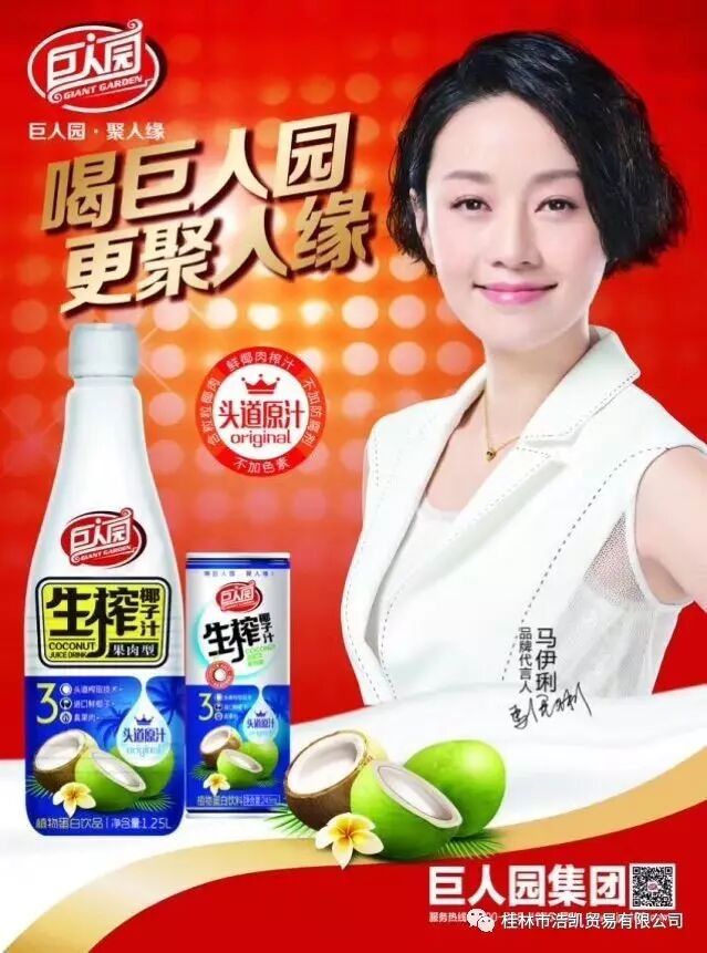 头道原汁,巨人园椰汁,味道更好,质量保证! 2023-04-19 23:50:29 喝巨人园,更具人缘!由马伊琍代言的巨人园椰汁才是真正的头道原汁,纯生榨,口感更好更健康!醋意一点点,爱你无极限,中秋即将到来,喜宴多多,您还在犹豫什么?喜宴上面用巨人园椰汁搭配巨人园苹果醋真的是高大上哦!现在只要您或者你的朋友办酒席满10桌,指定用巨人园椰汁+巨人园苹果醋,我们立即给你各送一件作为贺礼!赶紧告知你的朋友联系我们先预定吧:0773-7591660 阳女士