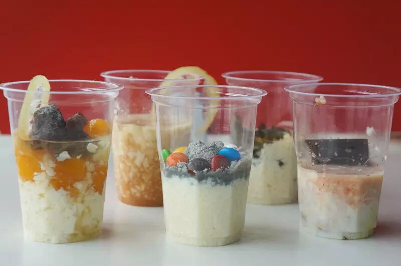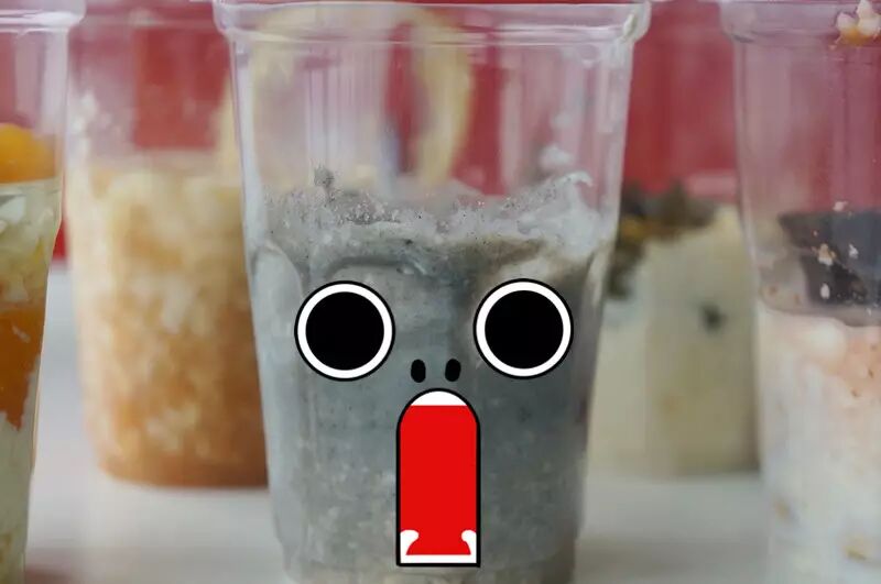 此时你会发现这两种食物在无形之中慢慢融合在一起,趁此时机赶紧拿出吸管搅一搅,你会发现,这个画面...相当的辣眼睛...