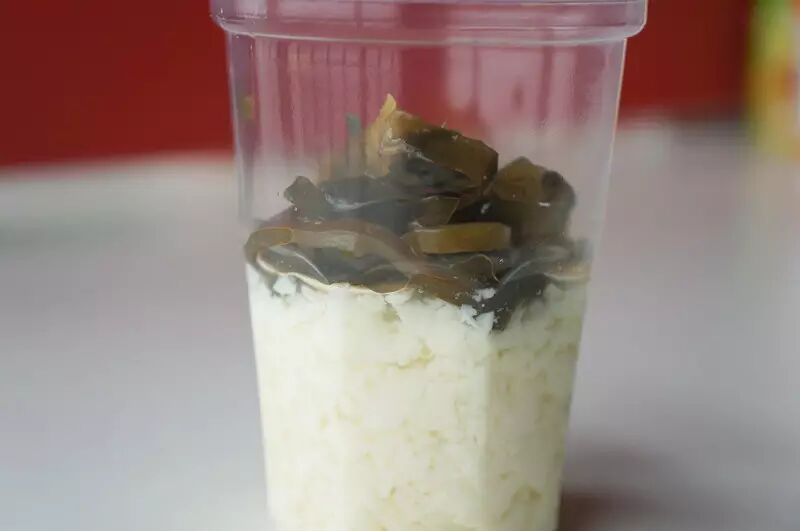 伴随着不断涌入到鼻中的海带香,浅浅地尝一口海带味豆腐脑,那感觉就仿佛打开了新世界的大门,让人欲(tong)罢(ku)不(liu)能(ti),保证吃过一次再也不想尝试。不过,如果你是咸豆腐脑的热衷粉,在武汉买不到咸味豆腐脑的情况下,可以囤上一波海带拌着豆腐脑吃,以解乡愁。