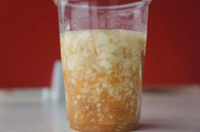 要想做好一份蔬菜味的豆腐脑可不是一件容易的事,因为首先你要想好用哪种蔬菜,然后要思考没有刀的办公室该怎么清理这些菜,最后还要考虑如何将这些蔬菜融入到豆腐脑中。对此,人家选择了一样集多功能为一体的秘密武器,那就是果汁泥!