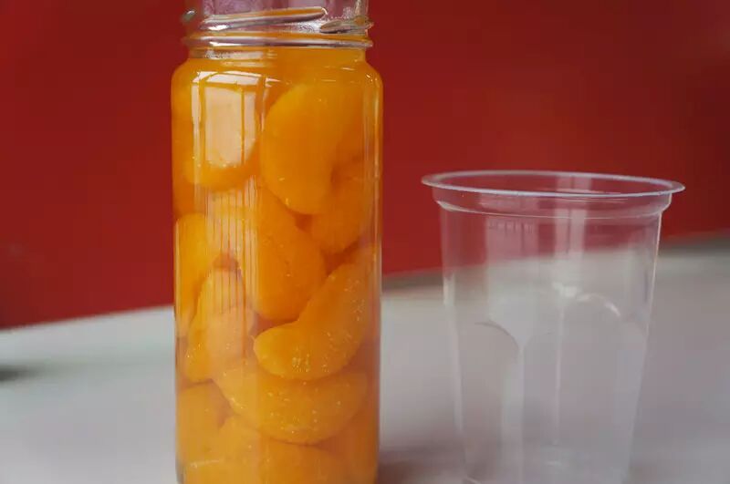 有了蔬菜版的豆腐脑,自然不会少了水果味的,这回人家学聪明了,找了一瓶简易的罐头,只需用力一拧,果肉自来。