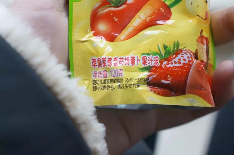 可不要小看这一袋果汁泥,人家好歹也是集齐了苹果、草莓、番茄、胡萝四种果蔬呢,不信你看!