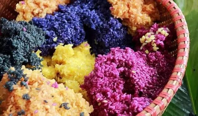 用它们提取红、黄、青、紫、黑等色素来染米饭