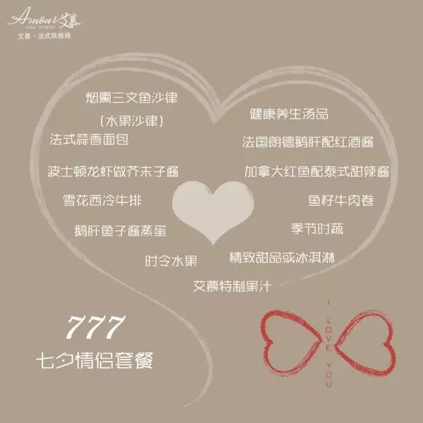 即有机会获得艾慕1314元七夕情侣套餐免单券(1份),777元七夕情侣套餐免单券(1份),520元七夕情侣套餐(1份),艾慕自助餐268元免单券(10份)。